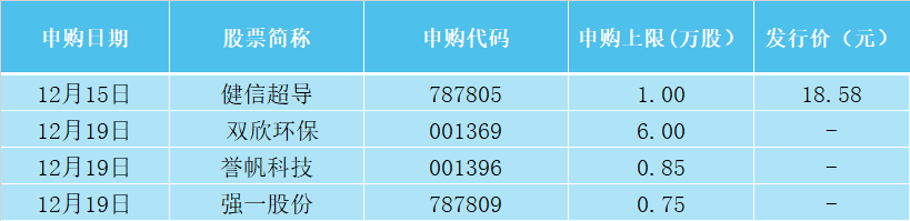 本周A股将有4只股票发行申购,其中科创板2只,深市主板2只。