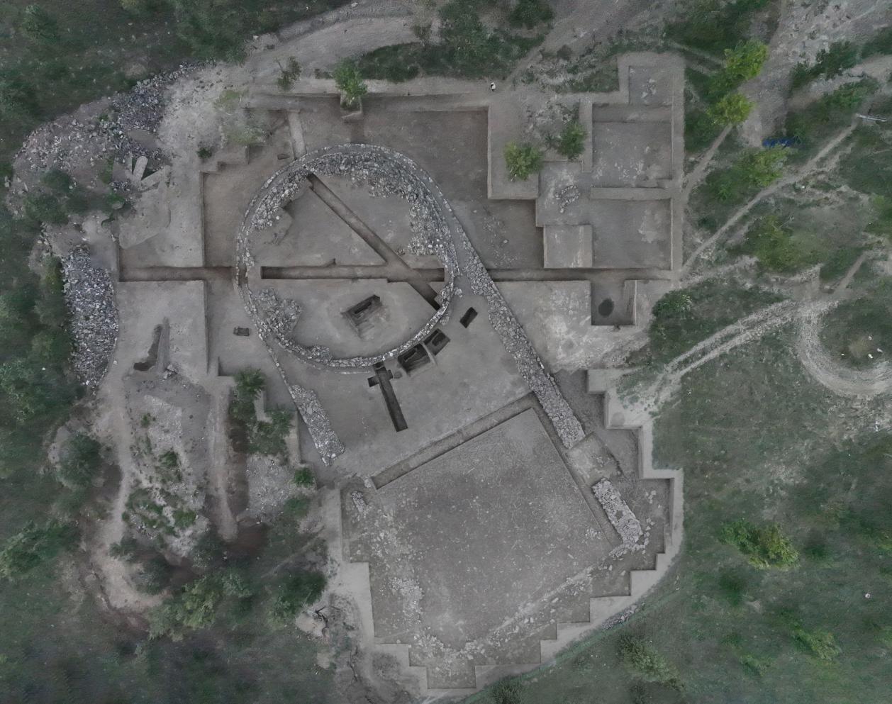 寨沟遗址以大型夯土建筑为核心,周围山峁上密集分布着大型墓葬、小型墓墓地、铸铜遗存、平民活动区等不同功能遗存,范围约300万平方米。其规模巨大、遗存丰富、要素齐全,凸显出商代北方黄土梁峁地带中心聚落遗址“多峁一体、功能互补”的分布特征。