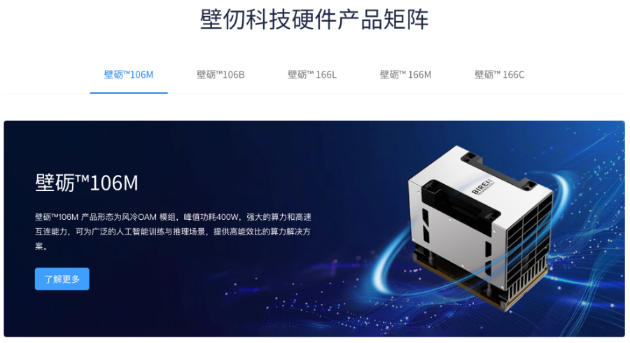 基于BR100及其衍生产品(如BR104),壁仞科技打造了壁砺系列商用硬件产品线,已量产落地。该系列包含液冷/风冷OAM模组、推理AI加速卡等,依托原创的GPGPU芯片架构以及BIRENSUPA软件开发平台,支持业内主流的深度学习框架与模型,为广泛的AI计算场景提供高能效比、高通用性的强大算力。