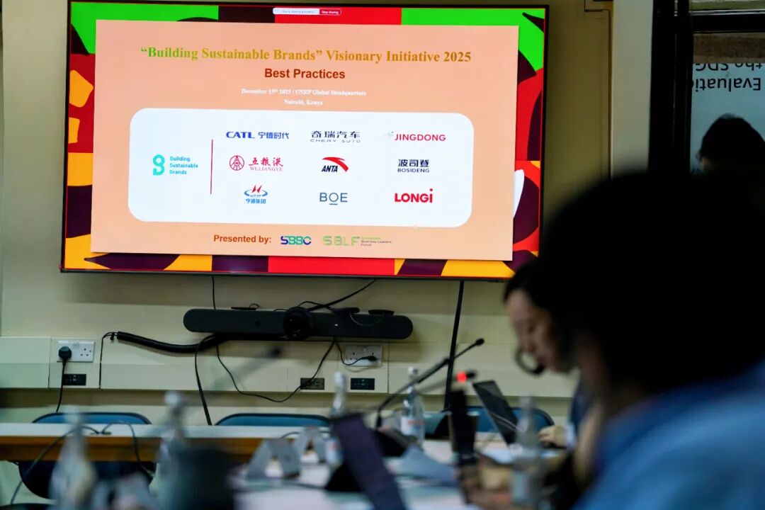 12月15日,位于肯尼亚内罗毕的联合国环境规划署(UNEP)全球总部内,京东、隆基绿能、宁德时代、京东方、五粮液、安踏、亨通集团、波司登、奇瑞汽车等9家中国领军企业,作为“创建可持续品牌”愿景倡议代表性案例(2025),进行正式发布。