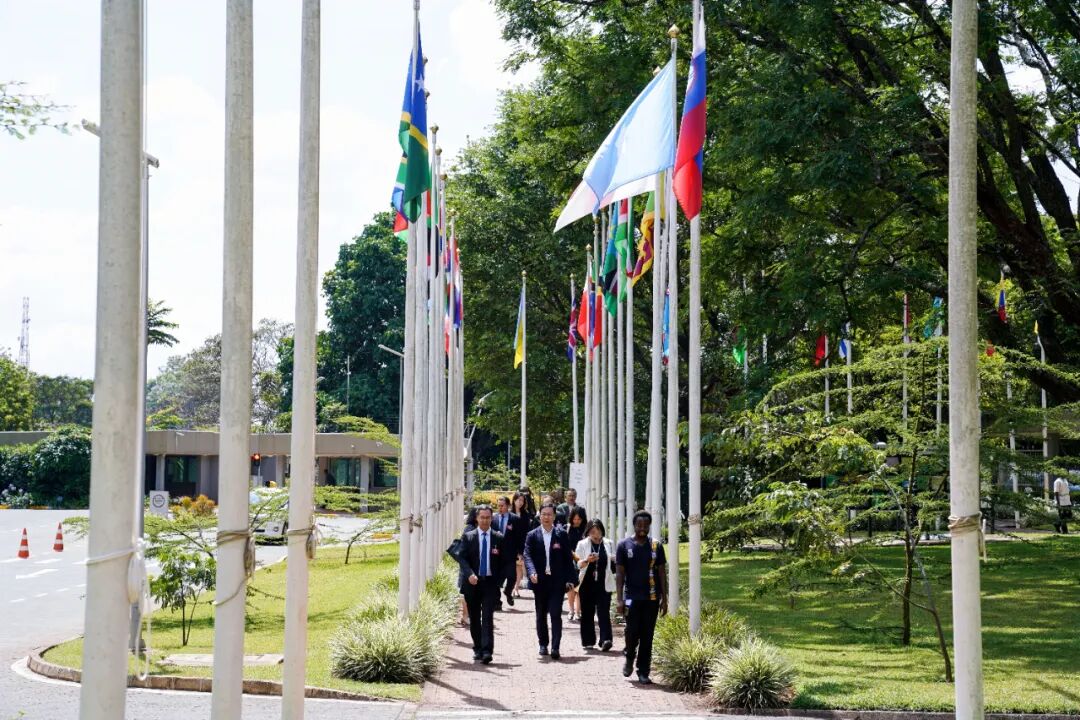 与会者步入位于内罗毕的联合国环境规划署(UNEP)全球总部