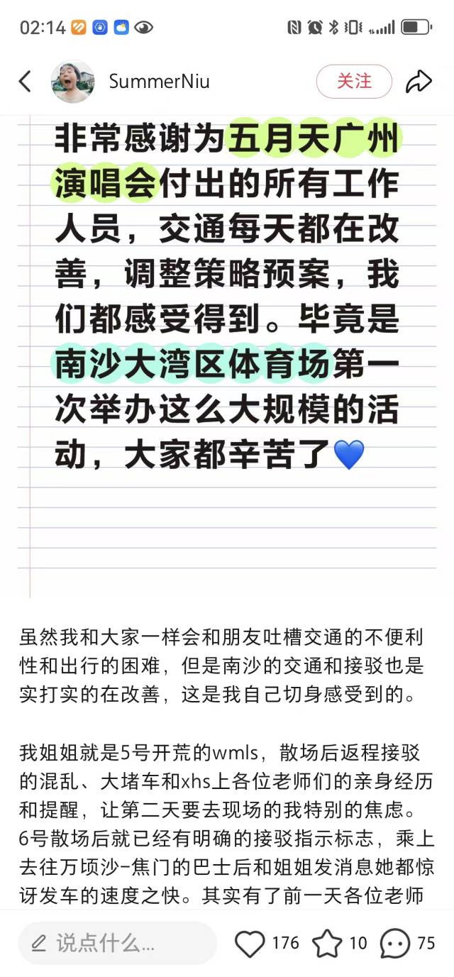 “上个星期的(WMLS)遇到一点点小阻碍,后面其实南沙区还是有很大的改进,已经听到民众的声音,有一直在进步。”从深圳自驾来的敏敏由衷希望明年五月天能够再来,“谢谢南沙文旅!”