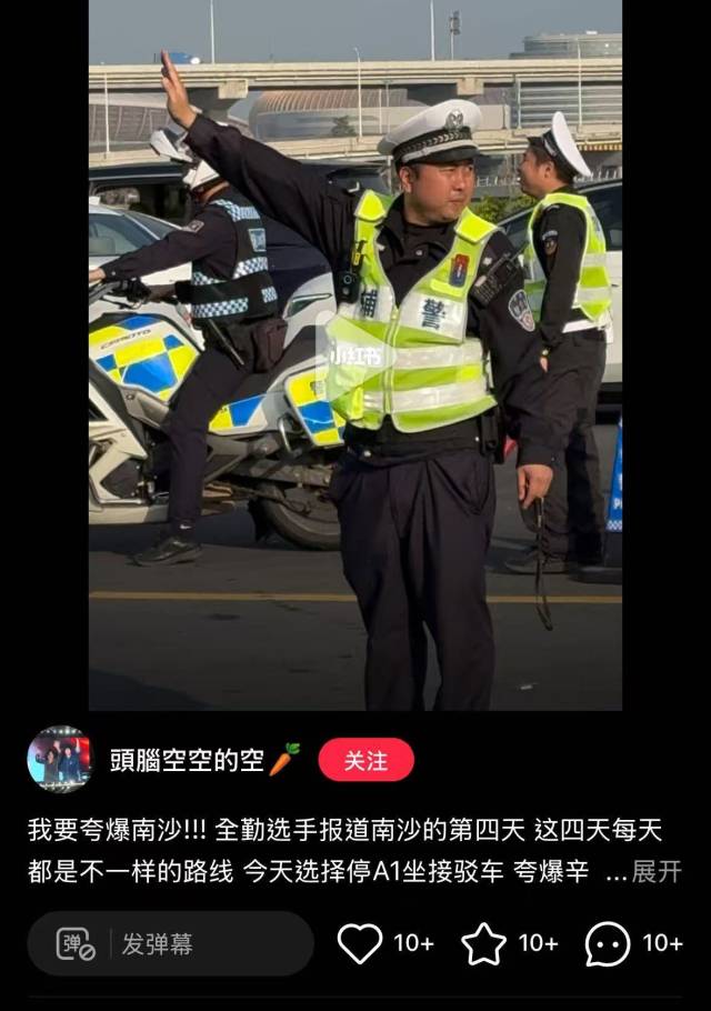 网友“头脑空空的空”写道:“全勤选手报道南沙的第四天,这四天每天都是不一样的路线,交警一直指引乘坐免费的接驳车,还有休息区坐着等,我要夸爆南沙!”