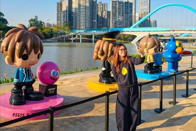 漫步体验区内,MAYDAYLAND STORE、Mayday皇冠拱门、#5525扭蛋机、留影拍贴机等特色装置错落分布,全新推出的“这是我的温柔”五公仔更让粉丝在打卡留念中重温青春回忆。“我已经和朋友来打卡三四次了,一有空就往南沙跑。”广州本地粉丝郑小姐坦言,五月天粉丝群体对IP体验区高度关注,这里已成为粉丝线下相聚的核心据点。