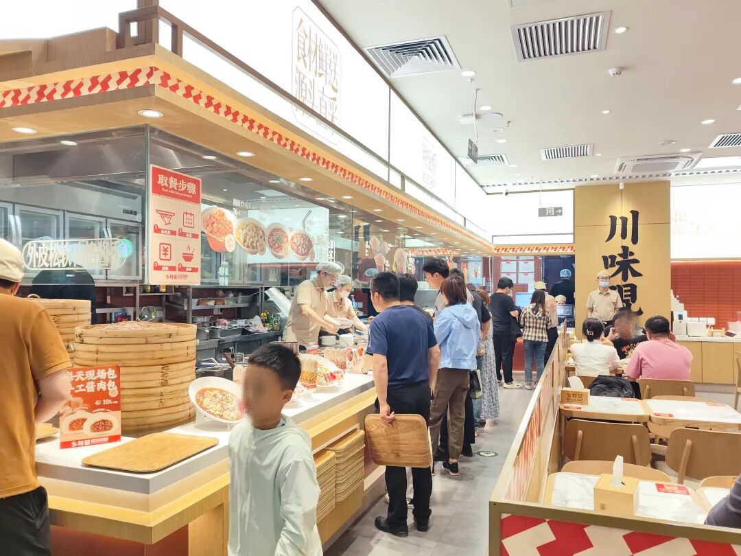 △图片来源:红餐网摄红餐网体验发现,从进店选菜到结账,花费不到10分钟,动线整体比较流畅,因此门店午高峰时期,现场排队等位时间并不长,大概在10-20分钟。