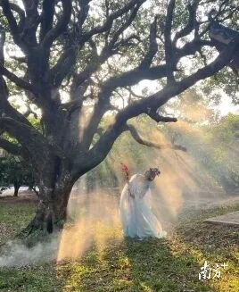 在摊底村古树下拍古装照。受访者供图