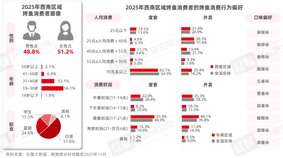 那么,当下烤鱼赛道的发展现状如何?各区域市场呈现出哪些差异化特征?未来的发展又面临哪些机遇和挑战?为了探寻这些问题,红餐产业研究院与师烤·豆花烤鱼联合发布了《烤鱼品类发展报告2025》。以下为报告的部分内容展示。