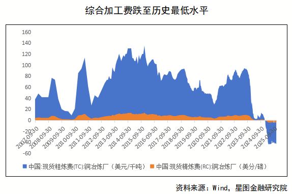 铜冶炼行业正面临显著的产能过剩压力,已深刻映射至产业链利润分配环节。2024年,全球精炼铜产量约2802.28万吨,其中中国产量占比高达55%,且持续的产能扩张正进一步巩固其全球主导地位。与此同时,印尼、印度、刚果(金)等资源国为提升资源附加值,正积极推行“资源本地化”政策,大规模新建和扩建冶炼项目,这共同加剧了全球冶炼产能的过剩格局。随着新增产能持续释放,这一过剩局面预计将延续较长时间。供需失衡直接传导至加工费环节,目前中国现货铜精矿的粗炼费(TC)与精炼费(RC)已跌至2007年有记录以来的历史最低点,导致冶炼主业陷入普遍亏损,行业盈利几乎完全依赖硫酸、金银等副产品收入勉强维持,凸显出冶炼环节当前面临的巨大经营压力。