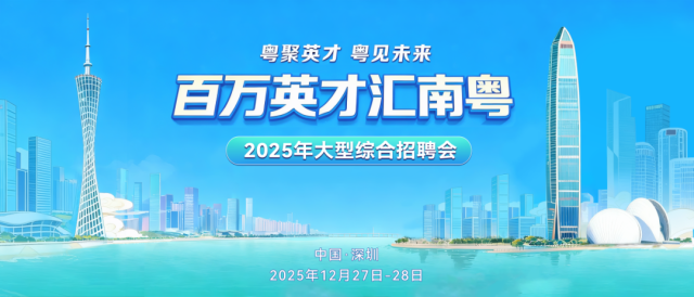 广东今年最后一场招聘盛宴来了!“百万英才汇南粤”大型综合招聘会将于2025年12月27日至28日在深圳会展中心(福田)盛大开启。1200余家名企携5万+优质岗位集结,为各类人才打造一站式求职平台。本次招聘会以“不拘一格汇英才”的开放姿态,广东21个市全面参与,构建起“全地域联动、全行业对接”的立体网络。无论你是应届生、往届生、实习生,还是留学生、本硕博人才、技能精英,这里都有属于你的机会。