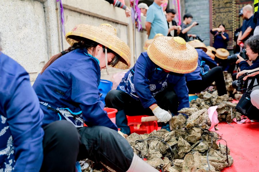 沙井古墟义德堂分会场同样“吸睛”。蚝民开蚝大赛及蚝菜烹饪比赛同步开启,开蚝选手手法娴熟,一敲一撬间尽显非遗技艺;烹饪选手匠心巧思,将鲜蚝化作一道道美味佳肴,进一步擦亮沙井美食文化名片。