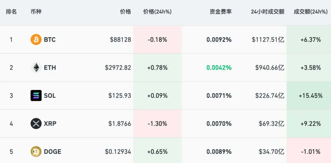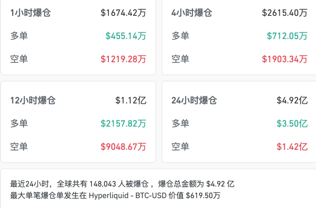 加密货币多个热门币种下跌,比特币价格虽回升至88000美元上方,日内仍跌近0.2%。Coinglass显示,最近24小时,全球共有近15万人被爆仓,爆仓总金额近5亿美元。