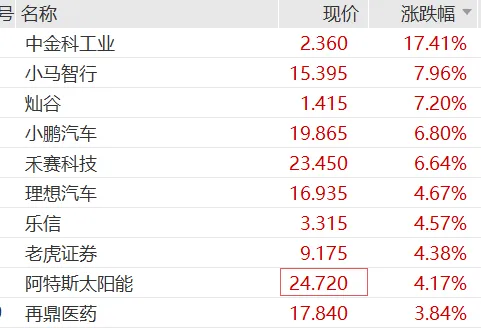 热门中概股多数上涨,纳斯达克中国金龙指数涨超1%,中金科工业大涨超17%,小马智行涨近8%,小鹏汽车、禾赛科技、拼多多涨超6%。