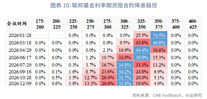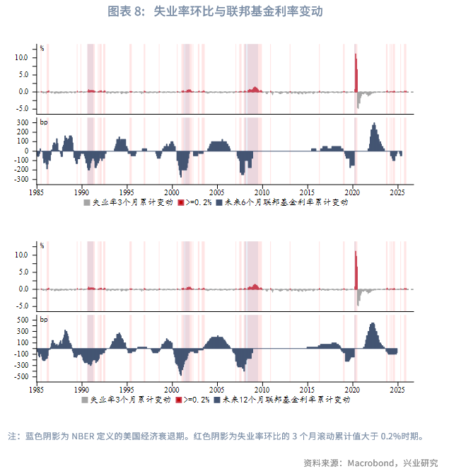 失业率连续三个月累计环比上升超过0.2%,触及历史预警阈值。历史经验显示,此信号出现后,美联储通常在随后6-12个月内降息50-150个基点。我们维持2026年美联储可能降息2-3次(50-75基点)的判断,若就业压力持续、通胀回落,市场降息预期可能前置。