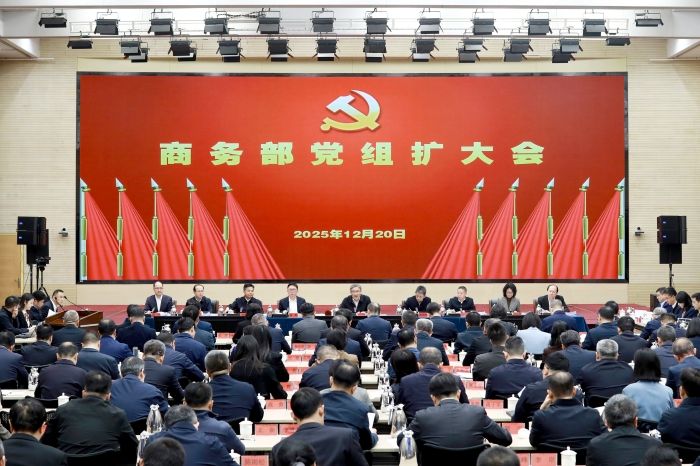 12月20日,商务部党组扩大会议在京召开。会议主要任务是:以习近平新时代中国特色社会主义思想为指导,深入学习贯彻党的二十大和二十届历次全会精神,落实中央经济工作会议部署,加强党对商务工作的全面领导,立足商务工作“三个重要”定位,总结2025年和“十四五”商务工作,研究部署2026年工作,谋划“十五五”商务改革发展。商务部党组书记、部长王文涛主持会议并作总结讲话,部党组成员和驻世贸组织大使出席并发言。