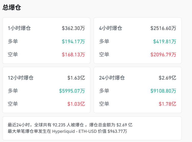 加密货币市场方面,多种知名品种上涨,比特币涨超3%报88202美元,以太币涨超5%。据Coinglass数据显示,过去24小时全球超9万人爆仓。