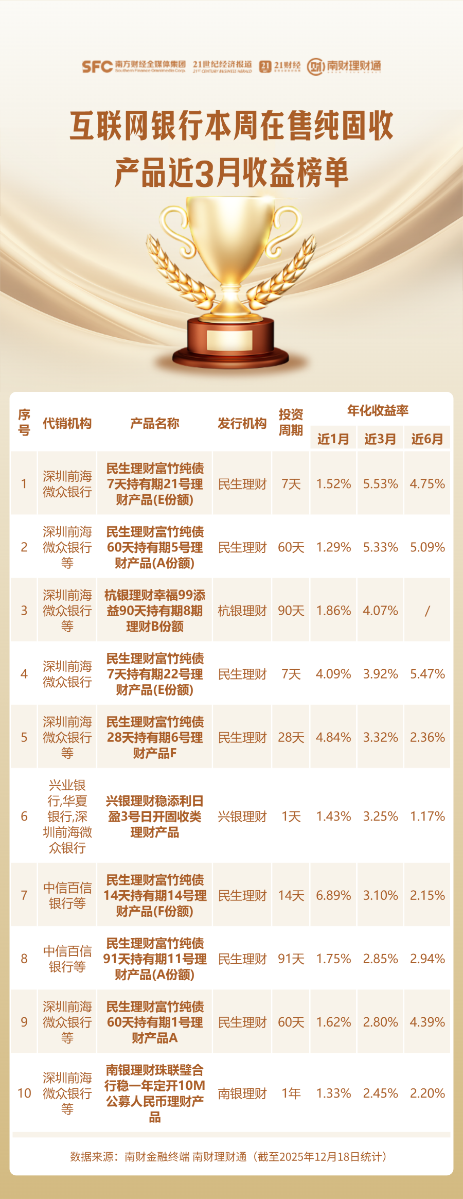 此外,南财理财通虽力求客观公正,但不对本评价榜信息的真实性、完整性和准确性作任何保证,排名信息仅供参考。