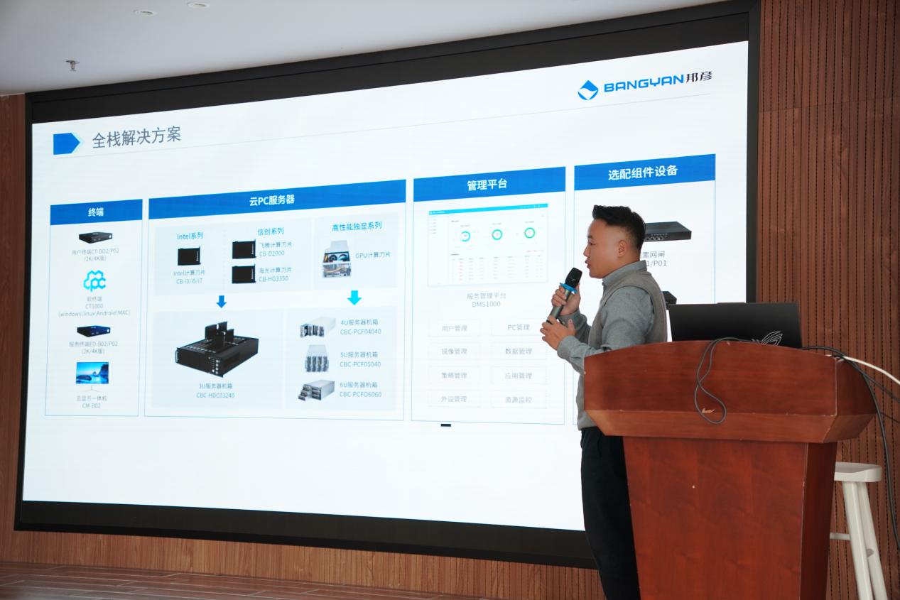 在业务专项分享阶段,邦彦科技核心嘉宾分别聚焦两大重点业务展开深度解读。云PC产品线解决方案经理龙淼围绕云 PC 业务,从技术原理、应用场景、市场竞争力等维度进行细致拆解,重点介绍了该业务在金融、电力、政务等领域落地的多个标杆性案例,让投资者清晰把握其发展脉络与市场潜力;数字人产品线市场部总监李海洋,则聚焦 AI 智能体业务,结合行业发展趋势,详解公司在 AI 领域的技术积累、产品优势及商业化进展,并首次公开公司 AI 智能体产品 “女娲 AI” 已在电商直播等领域开启应用实践的重要信息。