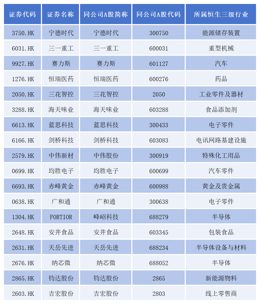 此外,蓝思科技、剑桥科技、中伟新材、均胜电子、赤峰黄金、广和通、FORTIOR、安井食品、天岳先进、纳芯微、钧达股份、吉宏股份也均已在A股上市。