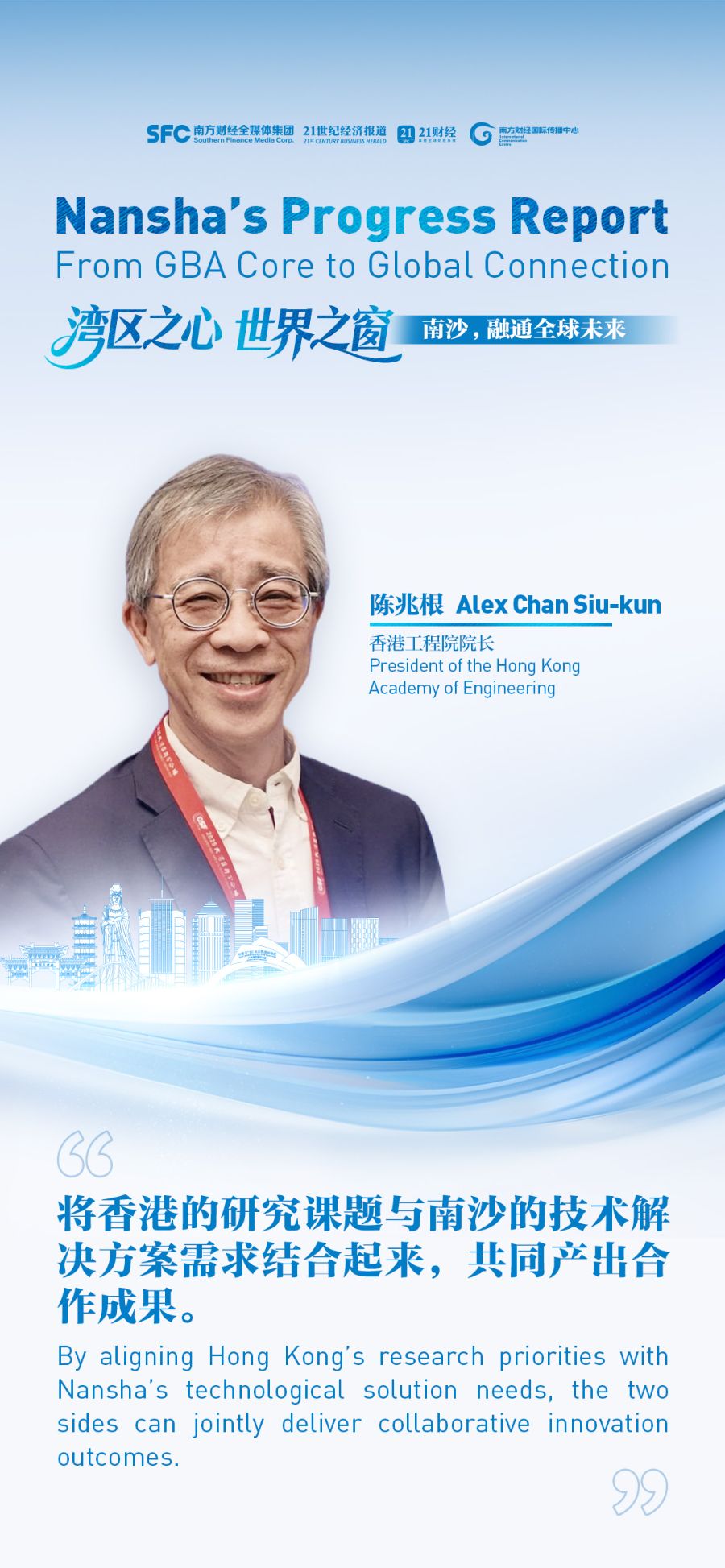 “香港可以与南沙加强交流协作,产出科创合作成果。”香港工程院院长陈兆根在接受南方财经记者采访时,就南沙与香港的科创成果转化及产业落地协作路径,给出了清晰的联动方向。