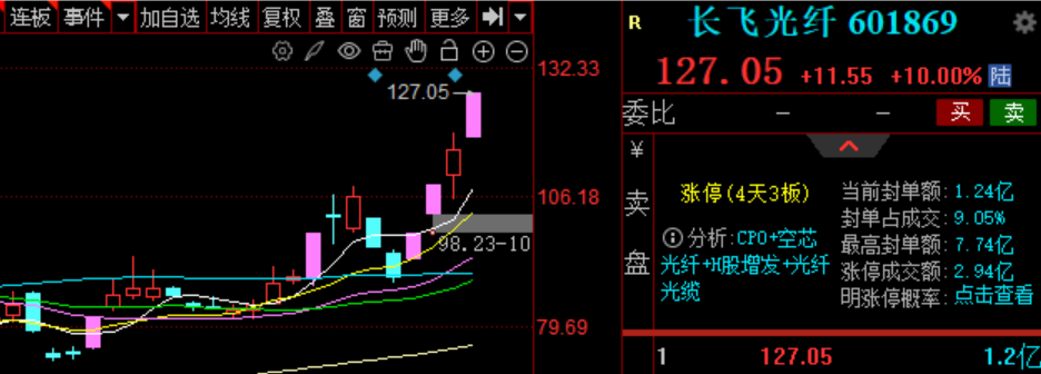 光纤细分近期补涨明显,龙头长飞光纤走出4天3板。