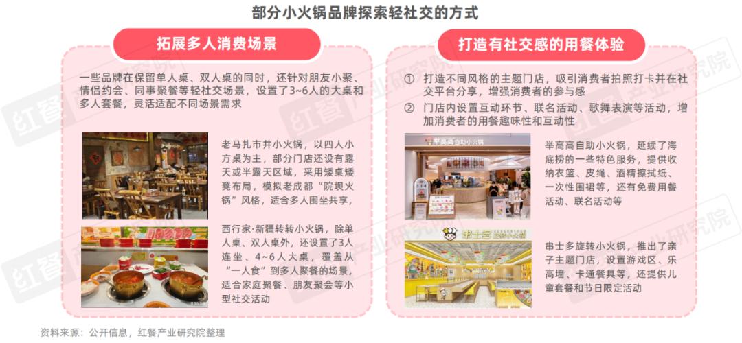 3.轻社交:一人食和轻社交并行发展,部分品牌从桌型、套餐、体验等方面满足社交需求