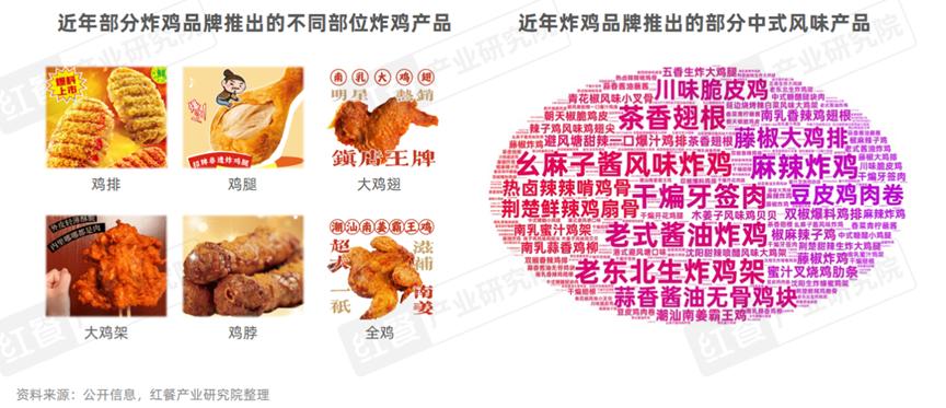 在产品创新方面,为了寻找差异化,众多炸鸡品牌深度挖掘鸡的不同部位,包含鸡翅、鸡腿、鸡架、鸡叉骨、鸡脖、鸡胗、鸡皮以及全鸡等,并在传统的美式或韩式口味基础上,积极探索多元化的炸鸡风味,比如中式本土风味以及更具地域特色的地方风味。