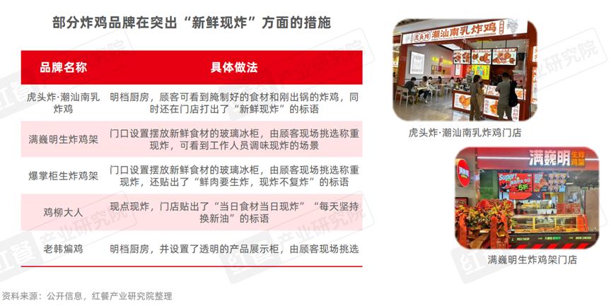 此外,部分品牌为了进一步强调食材的新鲜,打出了“生炸”或者“称重现炸”的概念。这些品牌通常在门店设置摆放新鲜食材的玻璃冰柜,由顾客现场挑选称重现炸。