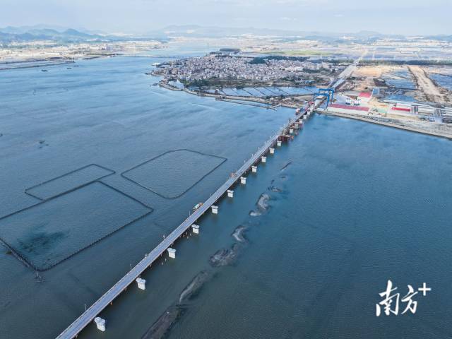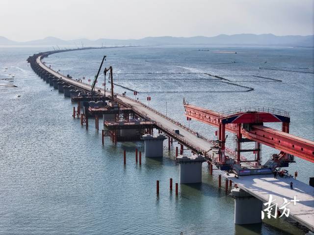 12月24日,在漳州市东山县诏安湾海域,随着架梁机将一榀数百吨的箱梁平稳、精准架设到东山跨海特大桥桥墩,漳(州)汕(头)高铁正式进入海上架梁施工阶段。