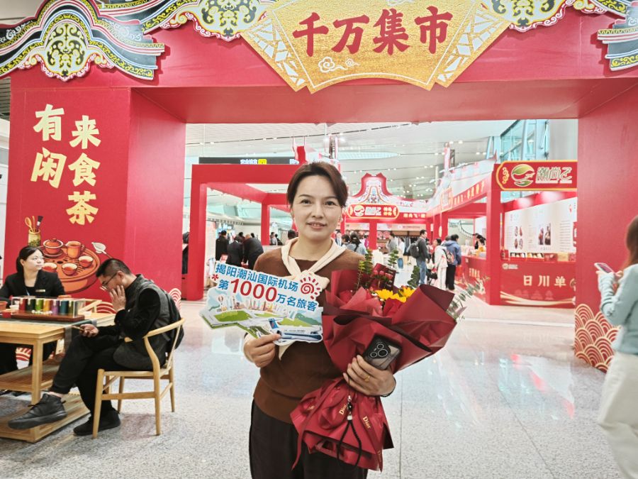 “我很荣幸成为第1000万名旅客,不仅见证了历史,还收到了免费机票,很是惊喜!”12月24日上午10点,在广东揭阳潮汕机场候机楼内,随着沈海英在值机柜台办理好值机手续,来自湖北黄冈的沈海英成为当天第1000万位旅客。沈海英介绍,在当地工作生活26年,揭阳已成为她的第二故乡,当天她将乘坐航班前往武汉,接父母来揭阳团聚。