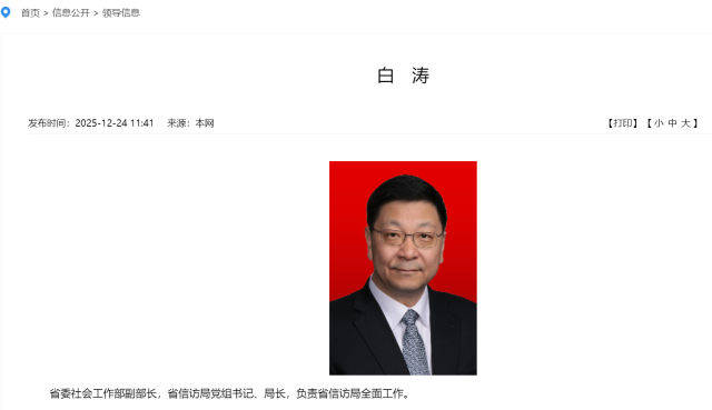 广东信访网信息显示,白涛已任广东省委社会工作部副部长,省信访局党组书记、局长,负责省信访局全面工作。