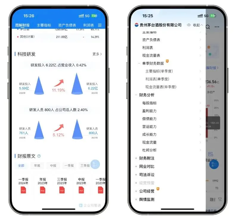 ②还可查询主营构成、研发投入等费用明细。