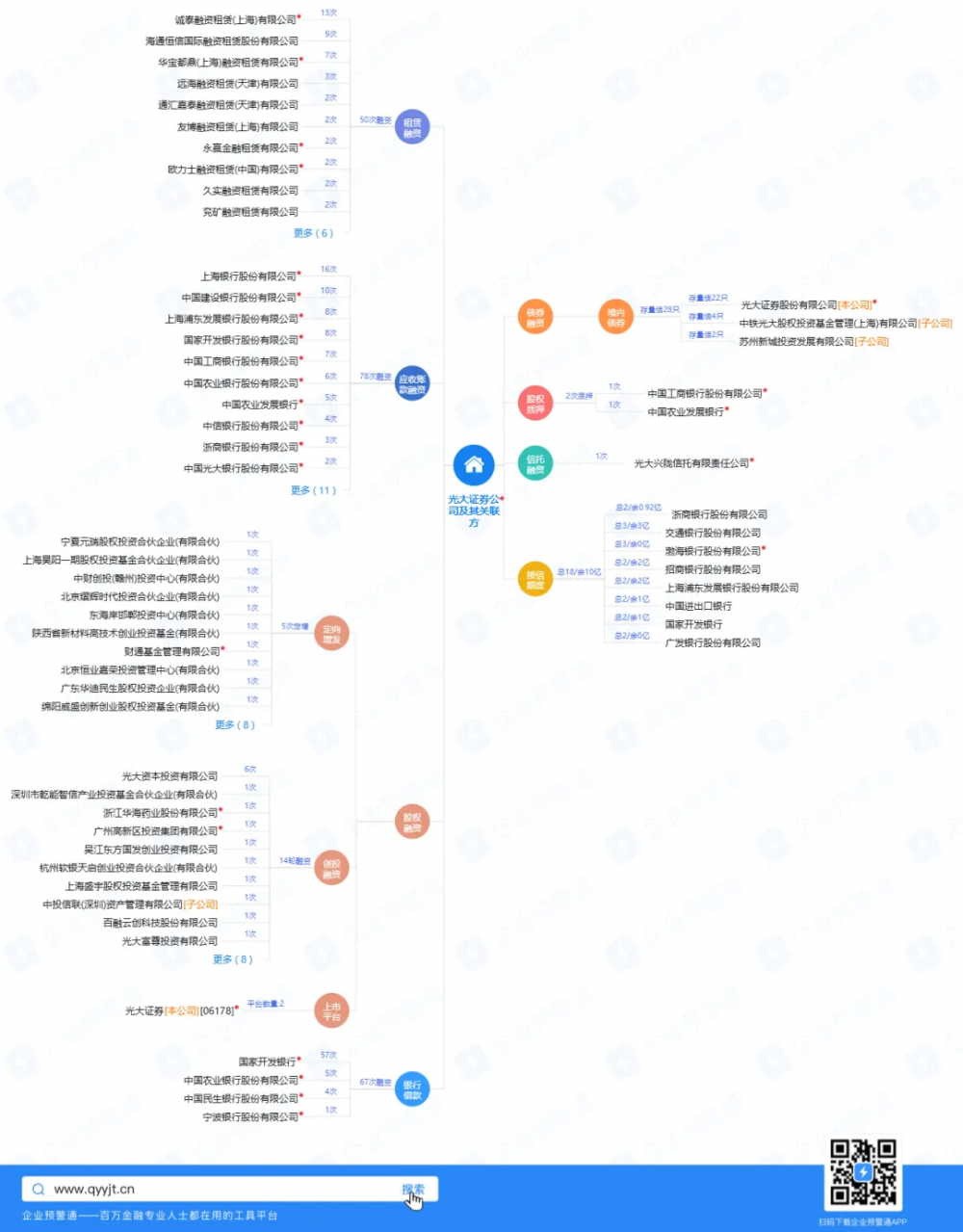 ②整合上市公司公告、中登网、债券募集说明书、信托产品公告、动产融资统一登记公示系统、工商信息数据、交易所网站等公开数据来源,能够当日更新。