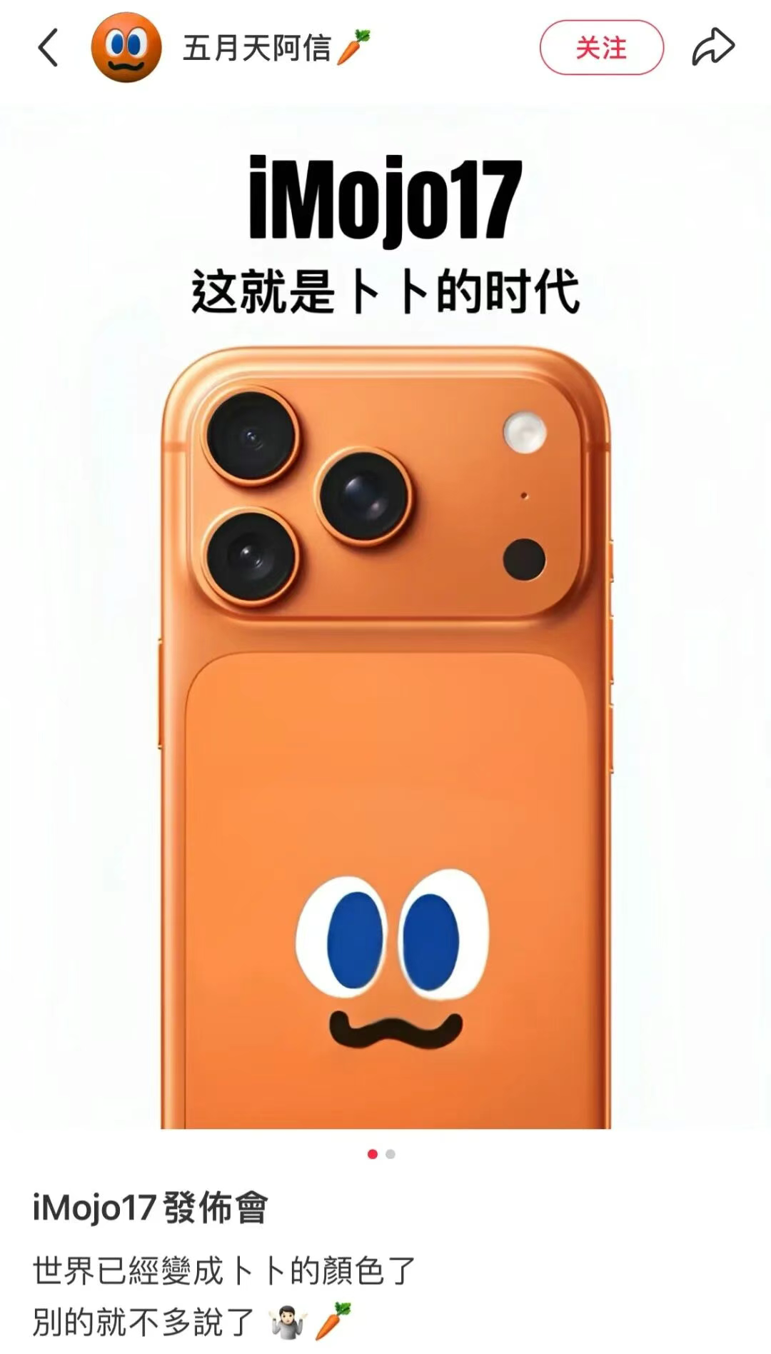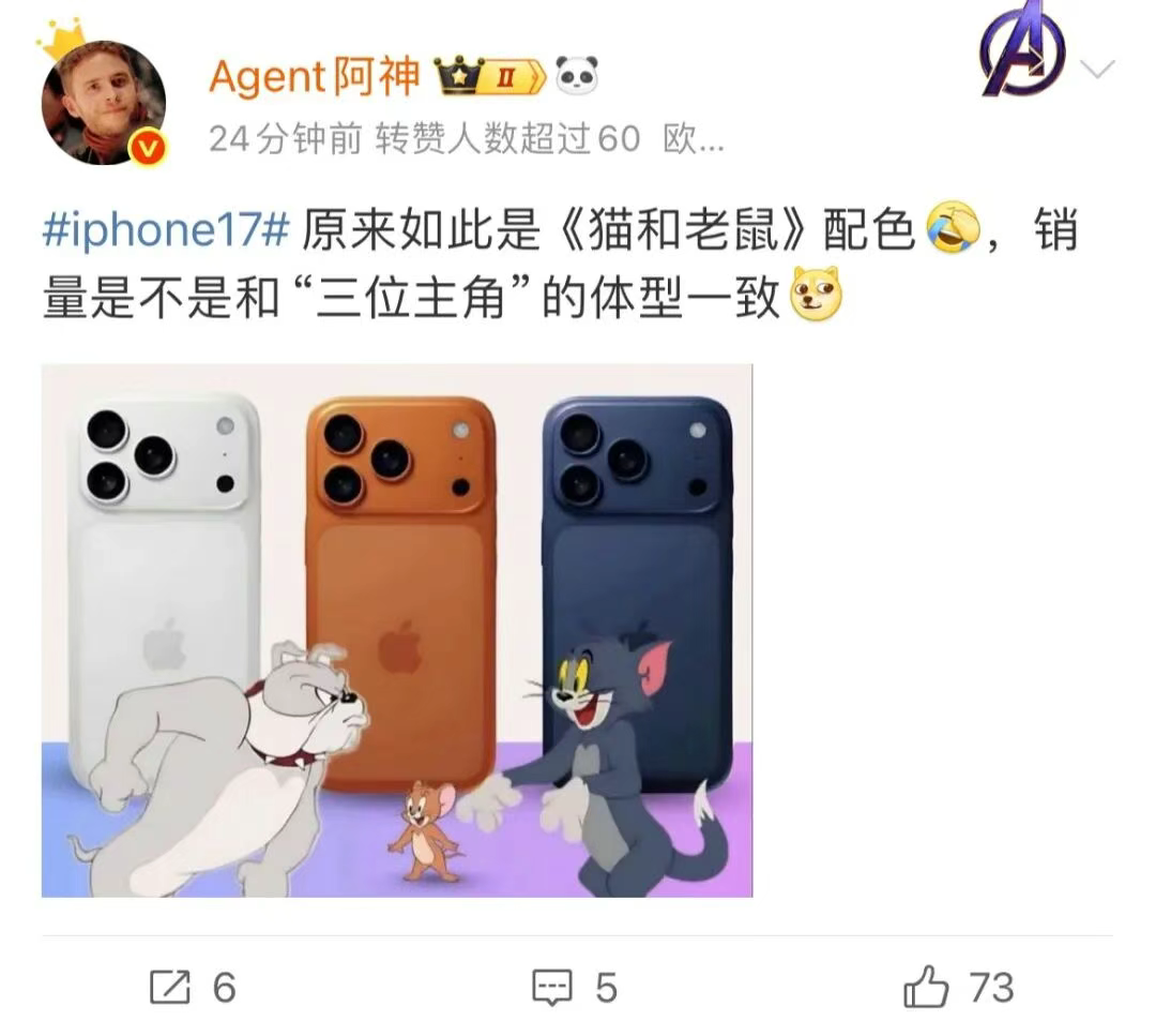 “看配色就知道是最新款”,这一点在今年的iPhone 17系列上得到了最佳作证。星宇橙色一经推出,就幸运地成为了网友们玩梗的绝佳素材。