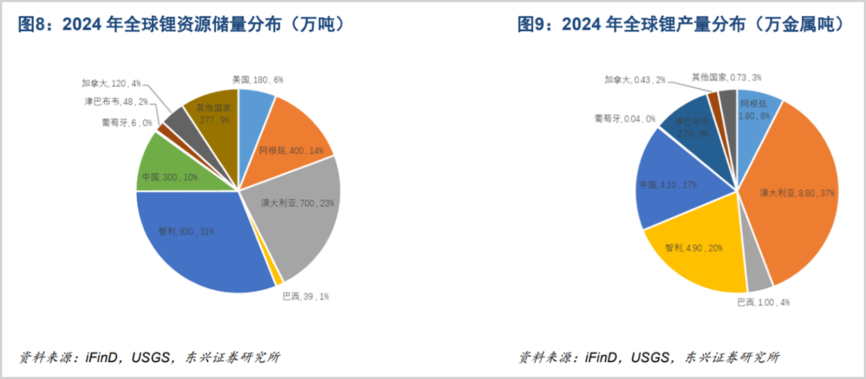 从全球锂矿资源分布情况看,主要集中在南美、澳大利亚以及中国地区。南美“锂三角”(阿根廷、智利、玻利维亚)以盐湖锂矿为主;澳大利亚是硬岩锂矿核心产区,也是全球最大的锂矿供给国。而中国则以“盐湖+硬岩+锂云母”多元分布为主,包括青海西藏的盐湖,四川锂辉石矿以及江西锂云母矿三大核心区域。