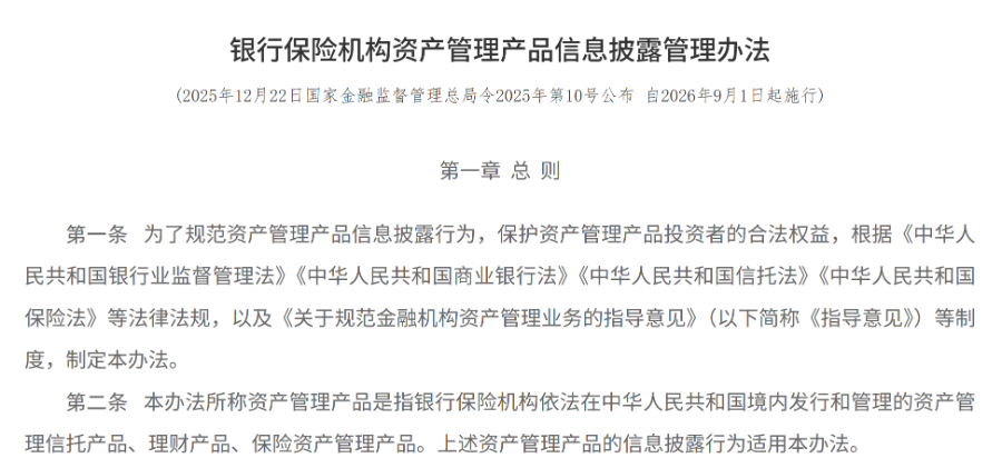 针对这些金融产品的信息披露问题,近日,金融监管总局发布《银行保险机构资产管理产品信息披露管理办法》(以下简称《办法》),明确了信托产品、理财产品、保险资管产品的信息披露基本原则、责任义务、共性内容及内部管理要求。