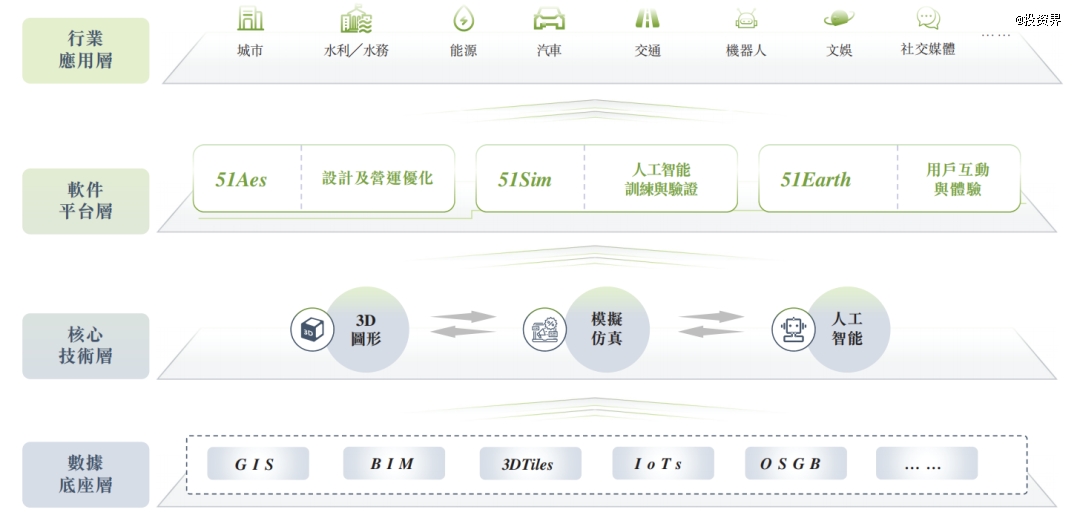具体而言,公司的三大业务包括:数字孪生平台51Aes、合成数据与仿真平台51Sim及数字地球平台51Earth。我们常见的各类信息模型属于51Aes,51Sim则主要面向智能驾驶仿真测试及AI数据培训。51Earth希望打造一个企业和消费者均可以体验的数字孪生世界,目前仍在起步阶段。