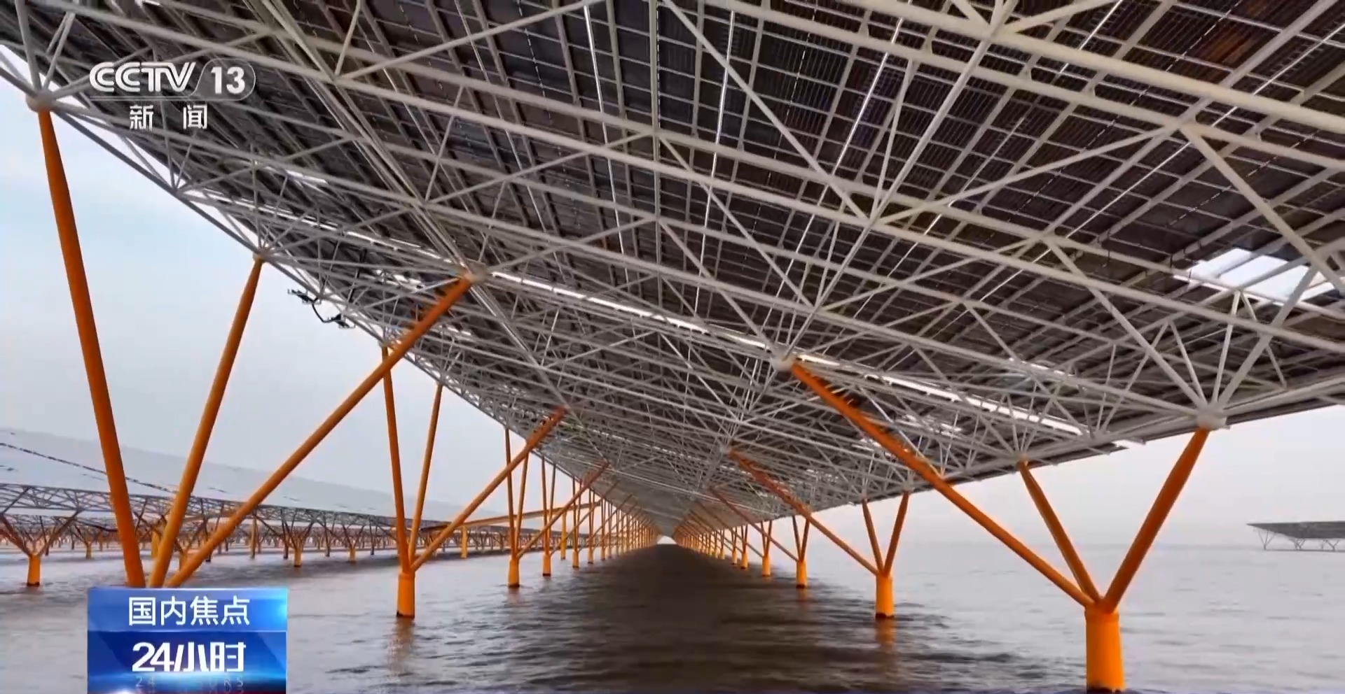 国家能源集团国华投资山东垦利项目副经理 张波:项目在全国创新应用大型海上钢桁架平台式固定桩基施工技术,采用“四桩基础+光伏平台”优化结构,平台倾角为精准调校的15度,不仅能抵抗11级强风和冬季冰情,还能节约项目用钢量超10%,为同类项目开发建设提供经验借鉴。