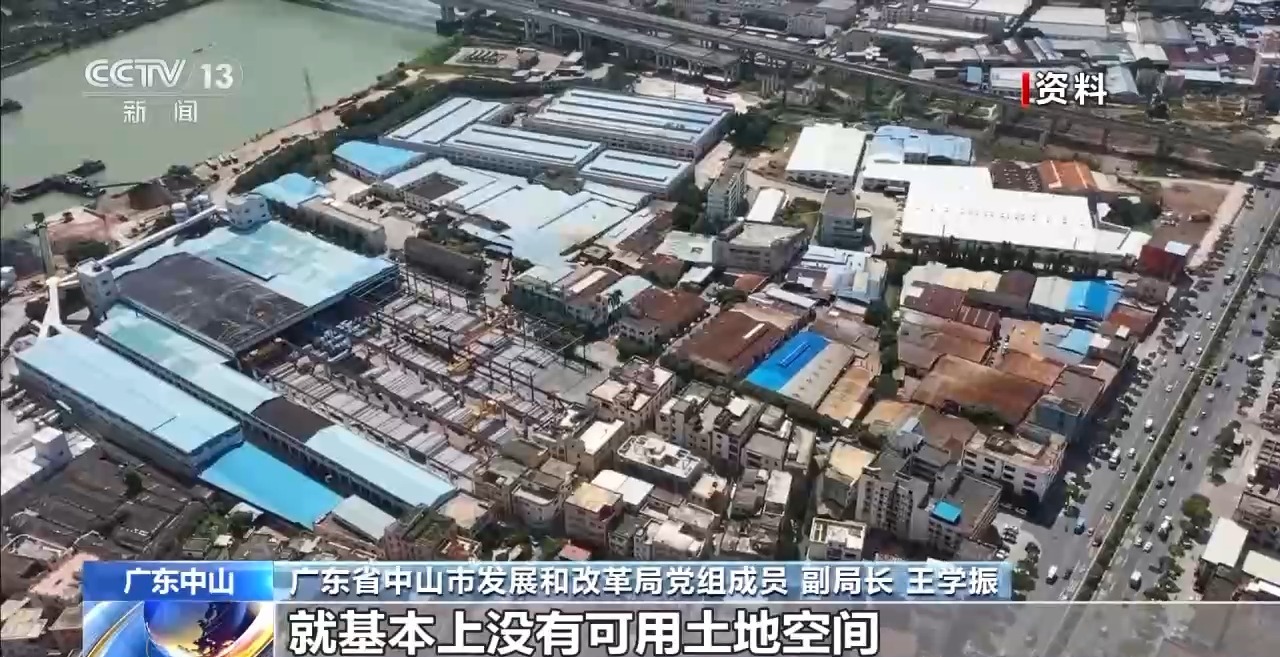 广东省中山市发展和改革局党组成员 副局长 王学振:遇到最大的困境还是空间要素保障不足的问题,土地资源非常匮乏。当时整个产业,低效工业园比较多,中山的土地开发强度比较高,个别镇街开发强度甚至达到70%以上,就基本上没有可用土地空间,可以支撑产业的发展。