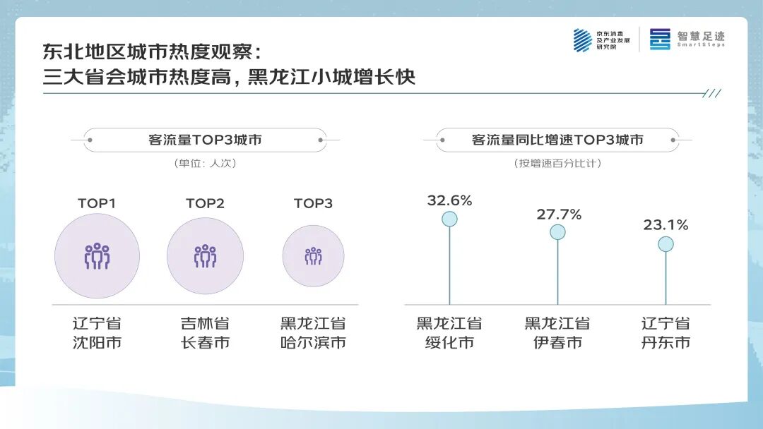近日,京东消费及产业发展研究院联合联通数智智慧足迹对今冬的东北三省的线上消费、线下景点的客流量进行观察,梳理了《大东北的“冬日流量密码”》: