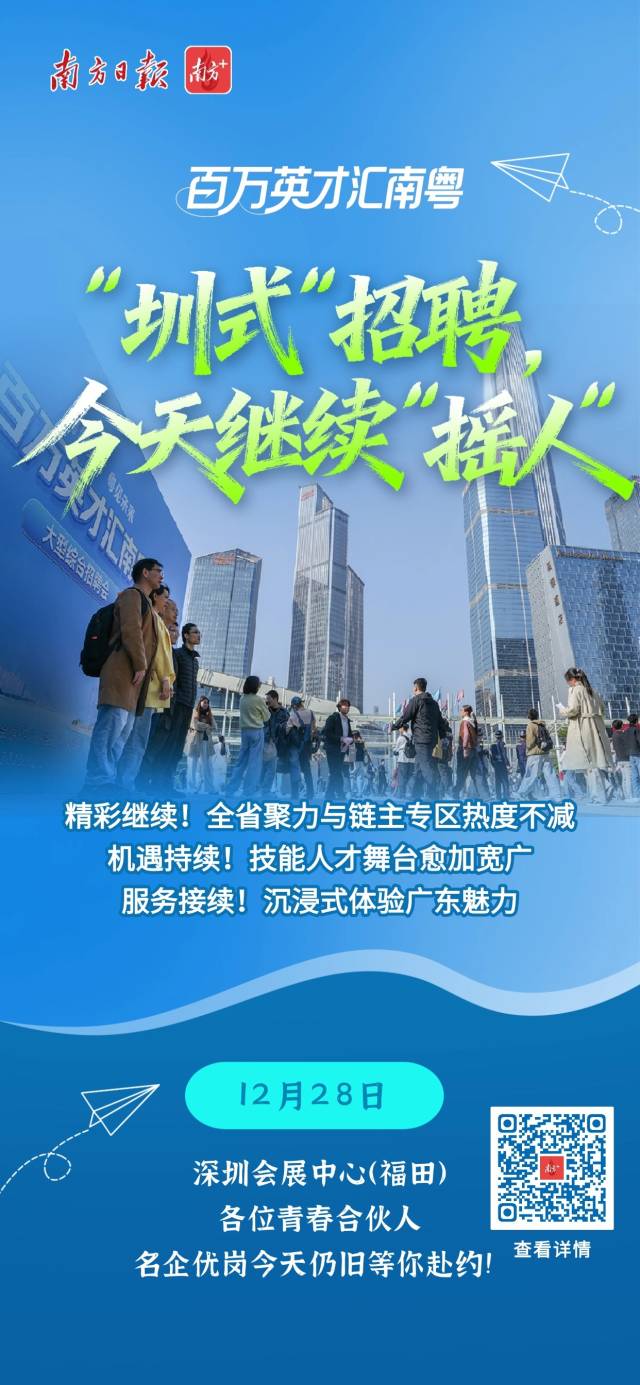 12月28日,深圳会展中心(福田)的热情将再次被点燃。2025年“百万英才汇南粤”秋季大型综合招聘会精彩继续!