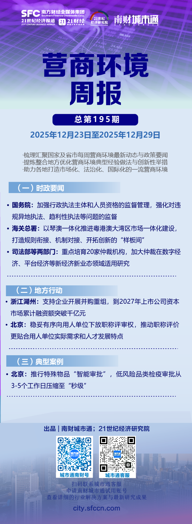 12月23日,国务院公布《行政执法监督条例》(以下简称《条例》)。《条例》自2026年2月1日起施行,有利于进一步优化营商环境,更好发挥行政执法监督在全面提升依法行政水平、强化法治政府建设中的重要作用。