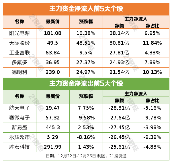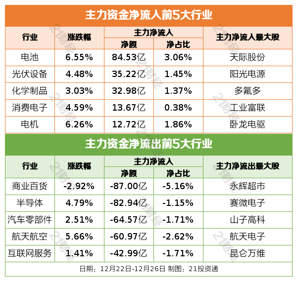 过去一周(12月22日—12月26日),三大股指集体上涨。截至12月22日收盘,上证指数周涨幅1.88%,报3963.68点;深证成指周涨幅3.53%,报13603.89点;创业板指周涨幅3.90%,报3243.88点。