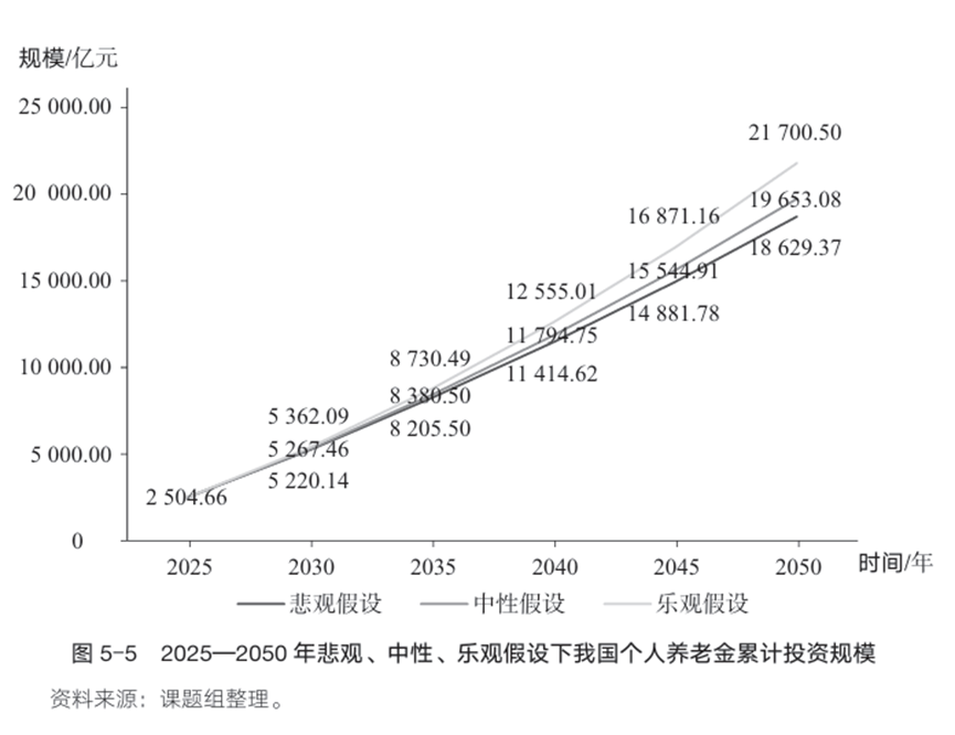 个人养老金累计投资规模=前一年个人养老金投资规模×(1+平均收益率)+当年个人养老金投资规模