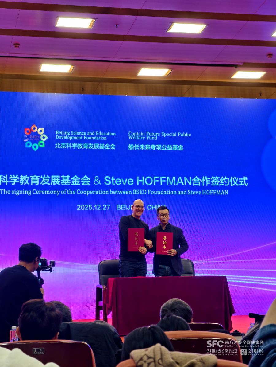 12月27日,北京科学教育发展基金会联合硅谷著名创业家史蒂夫·霍夫曼(Steve Hoffman)设立的“船长未来(专项)公益基金”在清华科技园启迪大厦启动。该基金立足全球视野与中国实践,致力于在人工智能快速发展的时代背景下推动科技向善,系统性赋能青年成长,培育具有人文关怀与责任意识的未来领航者。