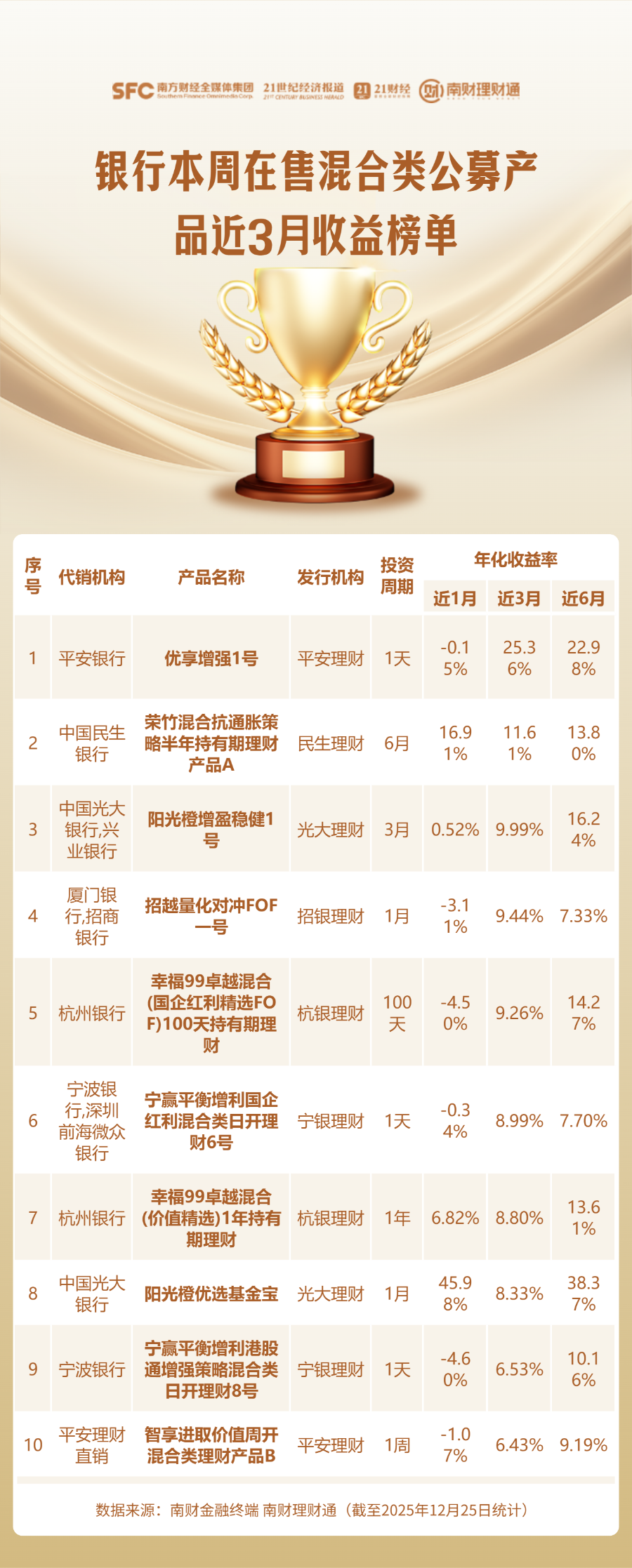 为提供有效的选品参考,榜单展示了产品近一月、近三月及近六月的年化业绩,并按照近三月年化收益率进行排序,以此反映其在近期市场波动中的多维度收益表现。