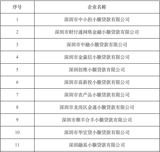 11家获评A级的深圳小贷公司,来源:深圳市地方金融管理局