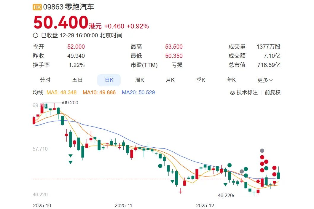 零跑的增发价,每股达55.29港元,相较协议签订前一日的收市价49.9港元,溢价10%,其市值也站上700亿港元大关。