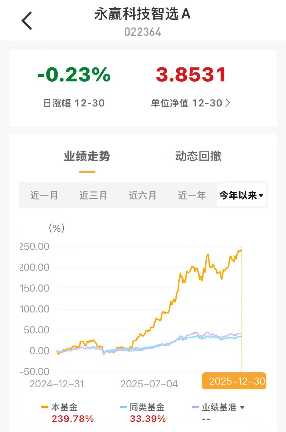 Wind数据显示,截至2025年12月30日,永赢科技智选A年内收益达239.78%,但其最大回撤为27.04%,年化波动率高达47.42%。
