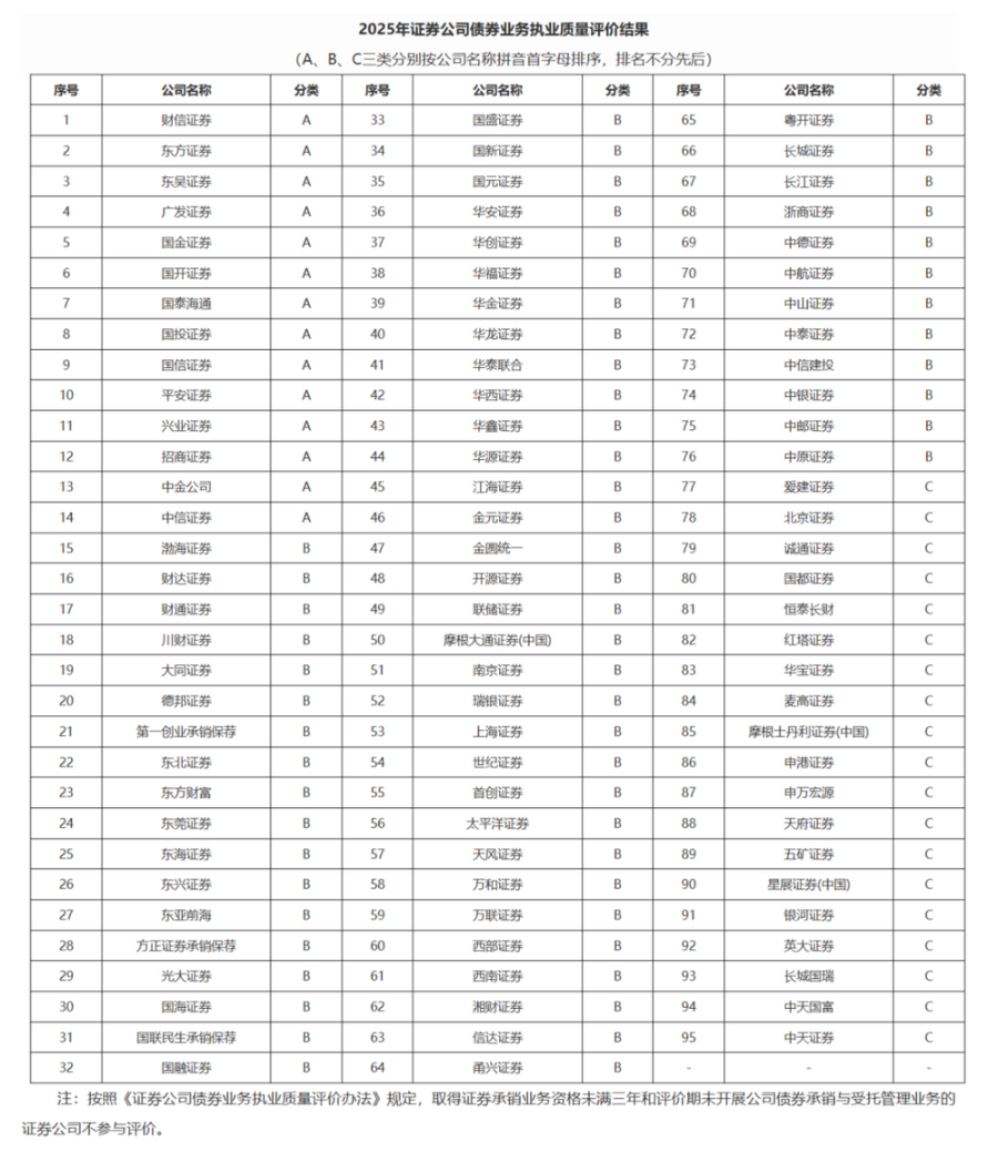 债券评级的变动则反映出债券承销业务合规要求的持续收紧。长江证券、国融证券等退出A类梯队,不排除是因为债券承销项目存在信息披露不规范、后续管理不到位等问题。近年来,监管层持续强化债券市场执业监管,将承销项目质量、风险防控能力纳入核心评价维度,推动债券业务从“规模扩张”向“质量提升”转型。