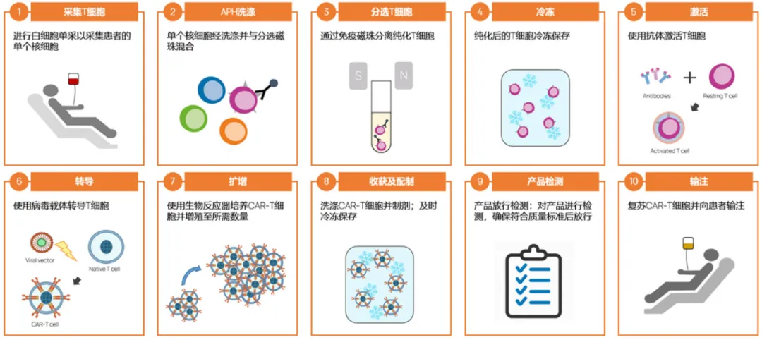 有CAR-T企业负责人向《21CBR》记者解释,CAR-T治疗讲究个性化,步骤繁琐复杂,光生产过程,要经历抽血、分离、激活、转染、扩增等步骤,每一环节都是挑战,成本高昂。